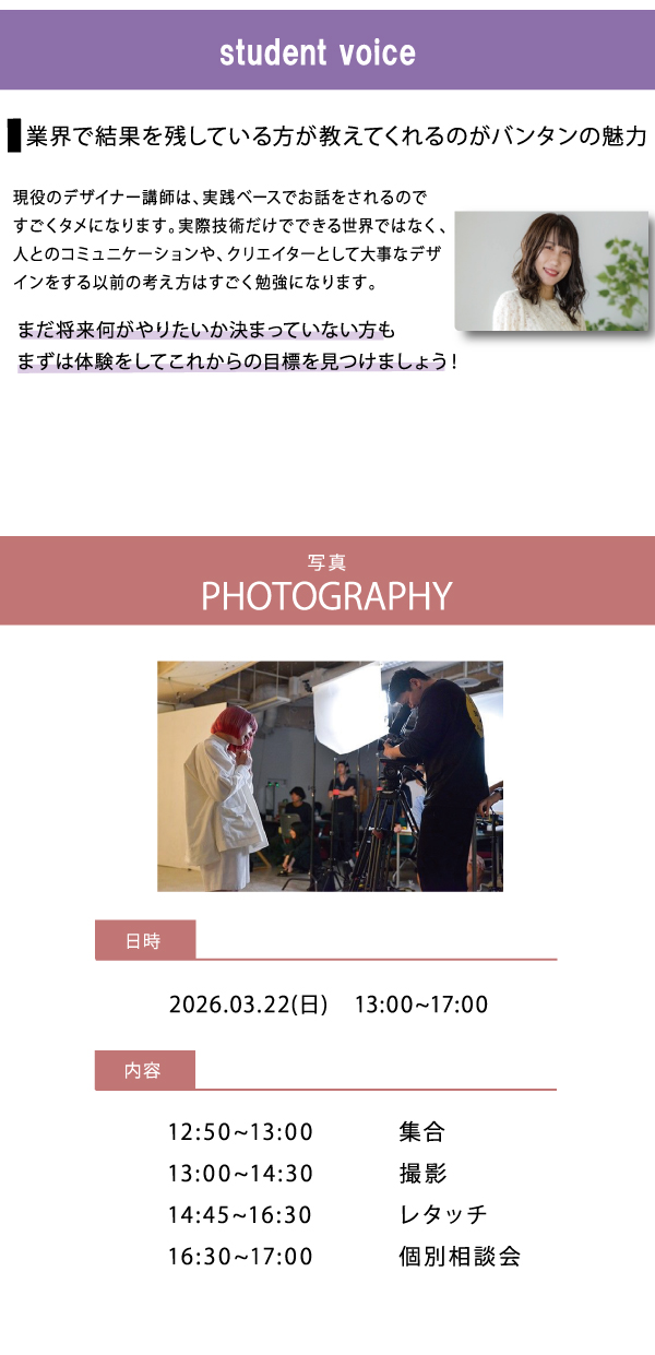 【スプリングセミナー2026】春の特別体験授業!アパレルブランド「LE CHENKO」とコラボで本格ファッション撮影体験♪〈フォト〉