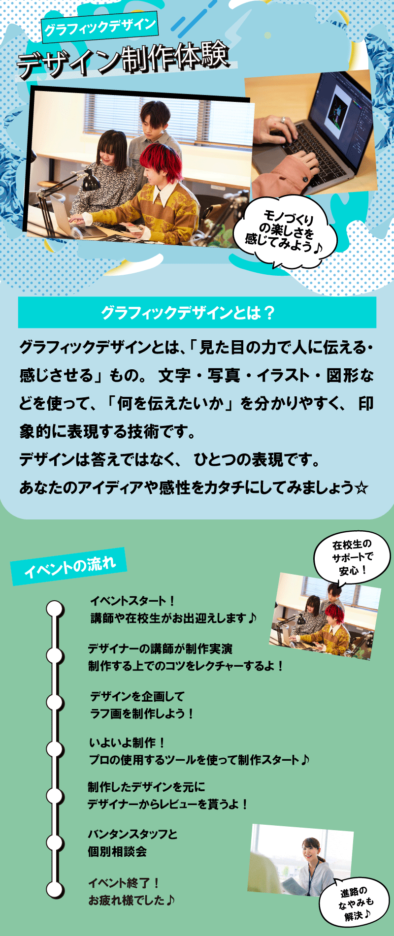 ♦東京校♦【グラフィックデザイン】体験授業★デザイナーさんってどんなもの作るの?実際に体験して進路を決めよう!
