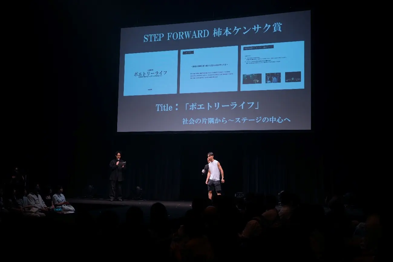 大阪メンバーからは、年間100万円のプロジェクト予算を準備しメンバーたちの企画実現に向けた制作を支援する『STEP FORWARD 柿本ケンサク賞』に、専門部映像クリエイター専攻3年、安原竜輝さんの作品『ポエトリーライフ』が選ばれました☆彡
