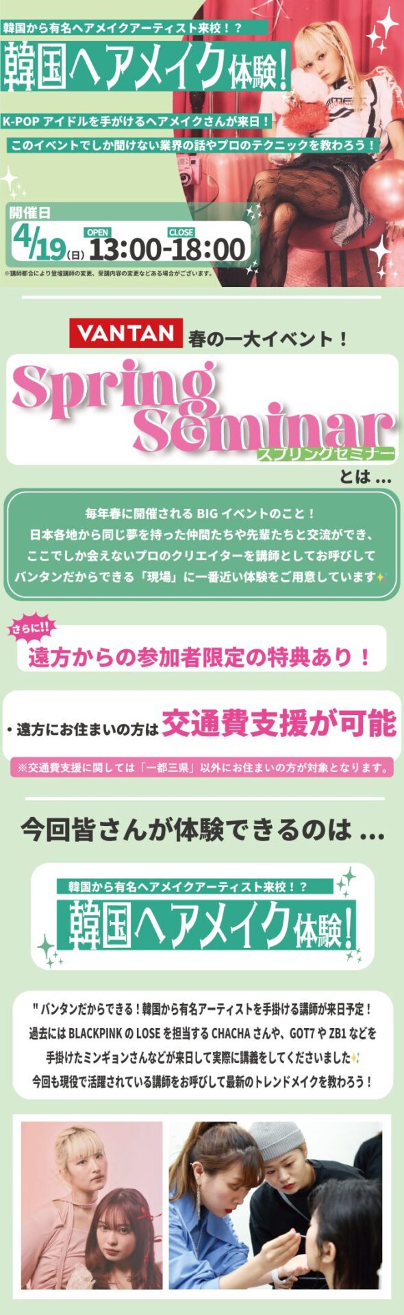 【スプリングセミナー2026】韓国ヘアメイク体験!韓国から有名ヘアメイクアーティスト来校!?【ヘアメイク分野】