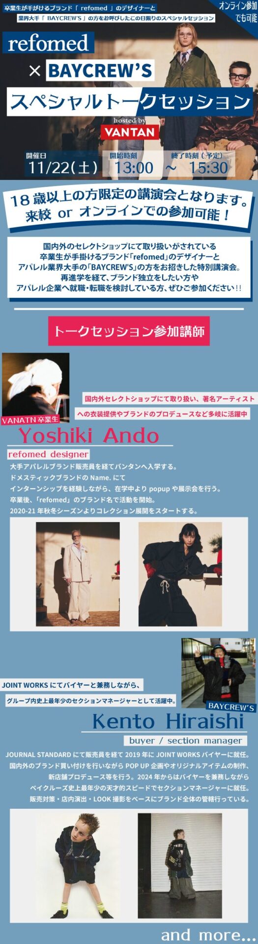 【18歳以上限定】【オンラインもOK!】refomed×BAYCREW’Sスペシャルトークセッション