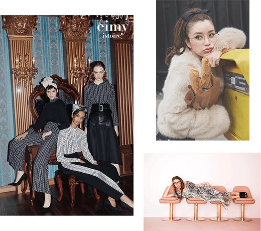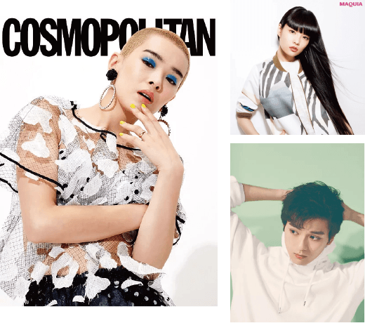 VoCE / bea's up / GINZA / WWD JAPAN / MORE / andGIRL / Soup. / with / Seventeen / Steady. / JJ / CLASSY. / ViVi / S Cawaii! / JELLY / SHEL‘TTER / GLITTER / fAUG. / BLENDA / Zipper etc..