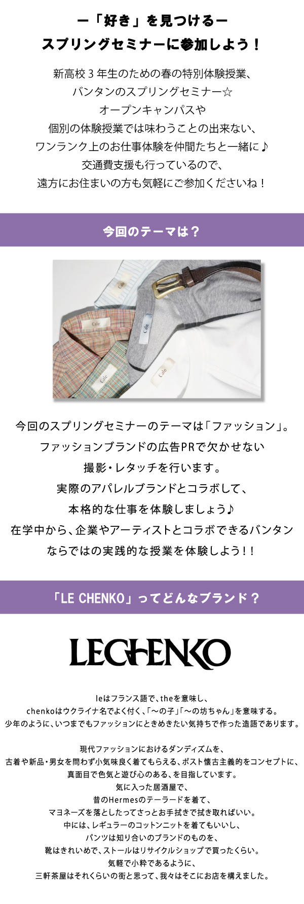 【スプリングセミナー2026】春の特別体験授業!アパレルブランド「LE CHENKO」とコラボで本格ファッション撮影体験♪〈フォト〉